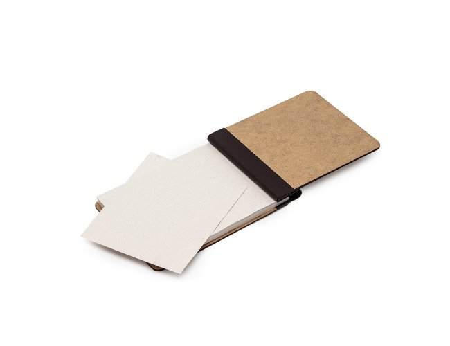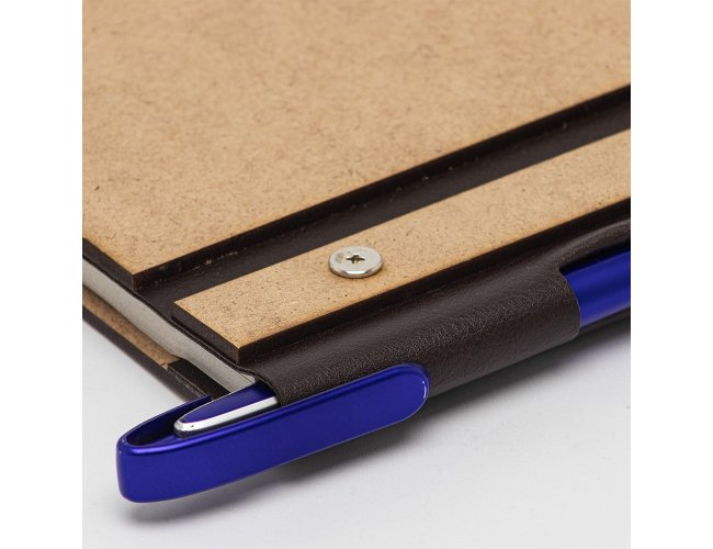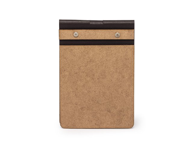 Bloco de anotações Ecológico em MDF com porta caneta e detalhes em couro sintético. Contém aproximadamente 98 folhas recicláveis e sem pauta. OBS.: NÃO ACOMPANHA CANETA, IMAGEM MERAMENTE ILUSTRATIVA.