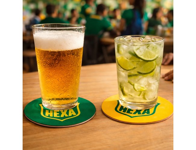 Bolacha de chopp Copa do Mundo em Papel Paraná, concebida como porta-copos promocional de alta visibilidade com baixo custo, ideal para bares, restaurantes, eventos e campanhas de marca. Produzida em papelão absorvente de qualidade que apoia copos e minimiza condensação, oferece área ampla para impressão frente e verso em cores vibrantes, reforçando a sua comunicação visual no ponto de consumo. O formato clássico e uso recorrente tornam essa bolacha um brinde funcional que associa sua marca a momentos de lazer e interação com o público.
