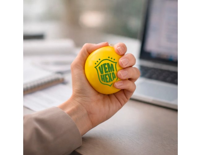 Bolinha anti-stress Copa do Mundo em vinil oco, produzida em material maleável e leve, pensada para aperto repetido que ajuda a aliviar tensão e melhorar o bem-estar no dia a dia. A superfície lisa permite personalização por tampografia, destacando sua marca de forma visível e duradoura em um item funcional para distribuição em eventos, campanhas e ações corporativas. É uma solução clássica de brinde que combina utilidade, simplicidade e presença constante junto ao público.