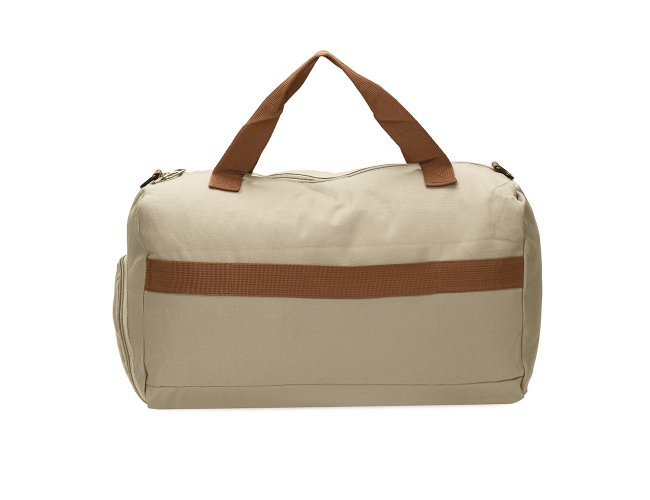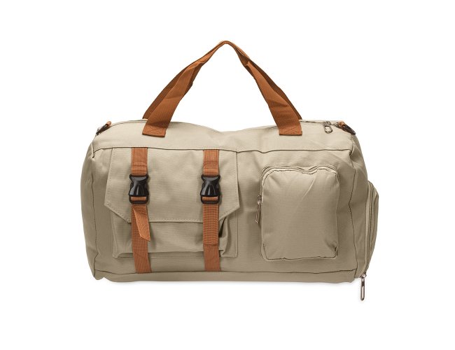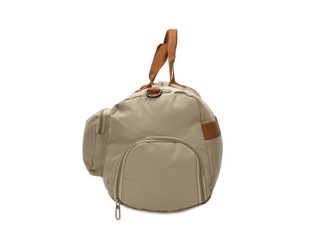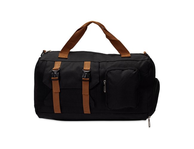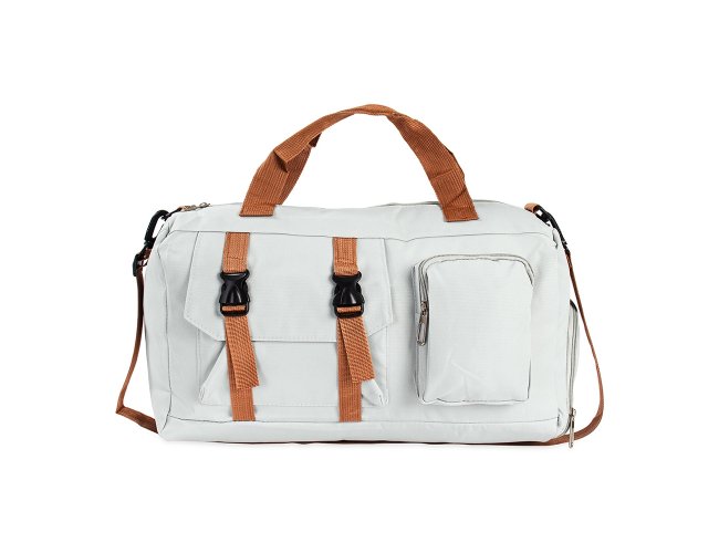 Bolsa confeccionada em Oxford impermeável, fechamento em zíper e capacidade para até 23L. Possui compartimento interno com dois bolsos em tamanhos diferentes. Conta ainda com um par de bolsos frontais, sendo um com fechamento em zíper e outro aberto com fivelas compressoras, além de faixa posterior para acoplar em puxadores de malas. Acompanha alça transversal ajustável.