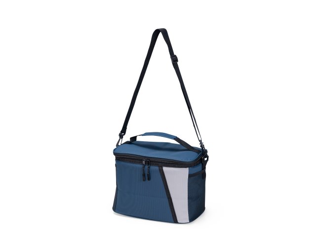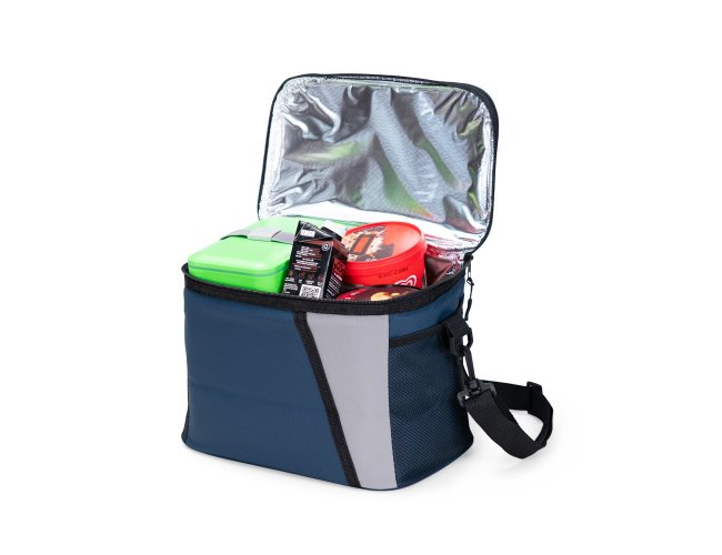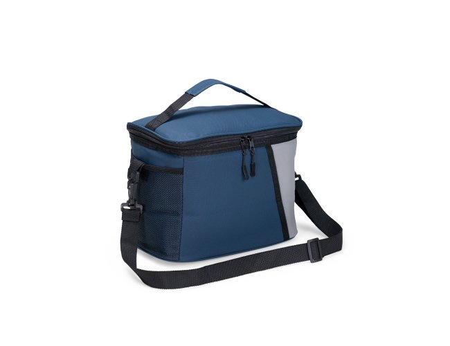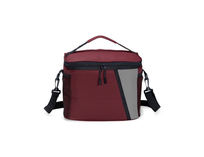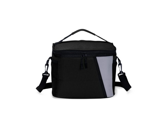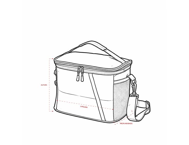 Bolsa térmica confeccionada em poliéster com revestimento impermeável em PVC de limpeza fácil e capacidade máxima de 12 litros. Possui camada interior em espuma branca e revestimento térmico em filme de alumínio, ideal para conservar a temperatura de alimentos e bebidas por mais tempo. Conta ainda com dois bolsos laterais em tela de nylon com elástico, alça superior de mão e alça transversal ajustável para facilitar o transporte.