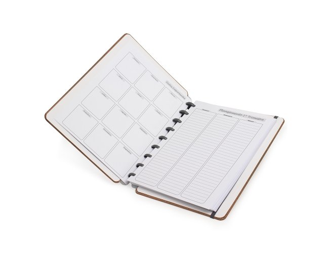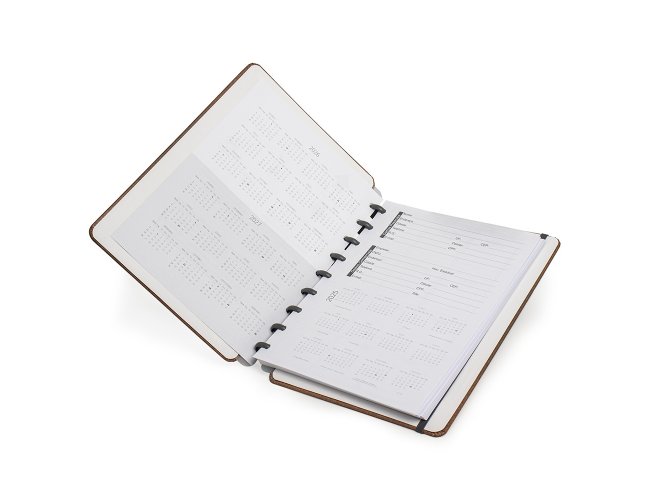 Feito para quem valoriza praticidade e organização, este caderno combina durabilidade e um design moderno com sua capa dura revestida em material sintético. Com 64 folhas de papel off-set 104g, sendo 50 impressas e 6 reposicionáveis que podem ser removidas, impressas em casa e recolocadas, oferece flexibilidade total. Inclui ainda páginas extras para dados pessoais, calendário de 2025 a 2027, datas importantes e planejamento trimestral, mantendo todas as informações essenciais à mão. Finalizado com 9 discos, costura nas capas, elástico de fechamento, cantos arredondados e laminação fosca, é ideal para acompanhar suas anotações diárias com praticidade e versatilidade.