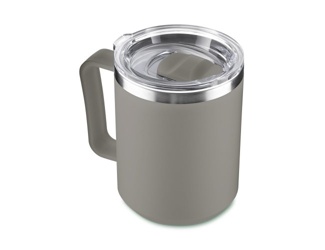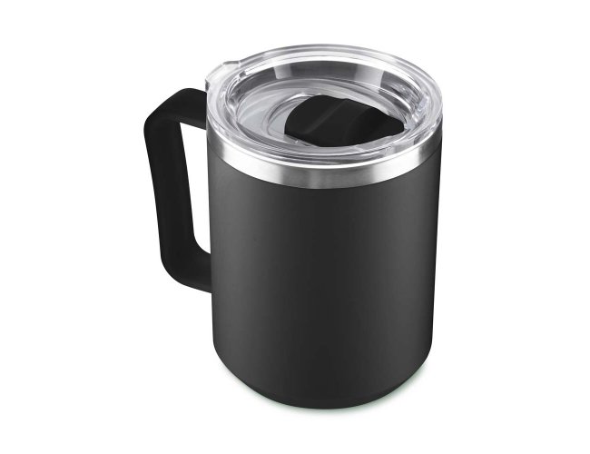 Caneca produzida em plástico PP de 450ml com interior em inox 304 para conservação da temperatura do líquido. Possui alça ergonômica e tampa plástica com vedação de encaixe.