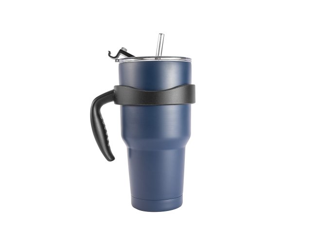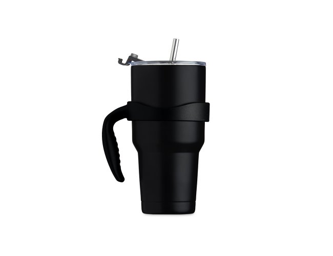 Caneca térmica de inox com capacidade para 800 ml, contém duas tampas, sendo uma acrílica com bocal, trava de segurança, e uma pequena tampa acoplada emborrachada para dissipação da temperatura, e a segunda tampa acrílica, contém compartimento que ao deslizar acessará ao bocal. Acompanha canudo de inox e escovinha de limpeza.