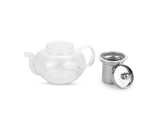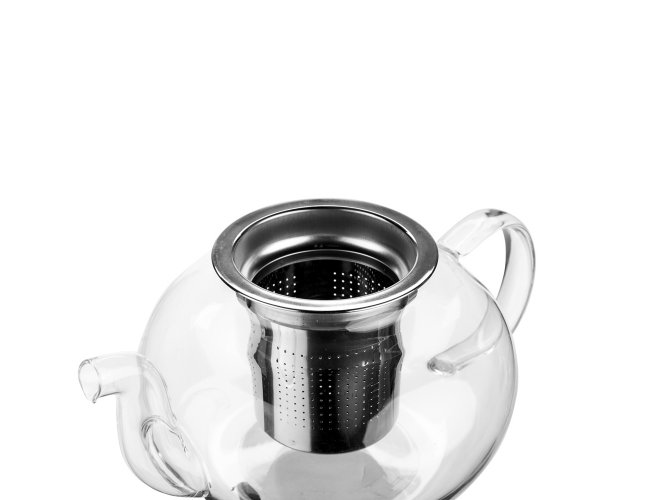 Chaleira feita em vidro borossilicato com capacidade máxima de 700ml. Dispõe de cesto infusor removível e tampa em inox.