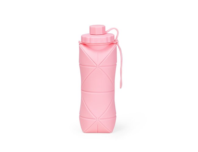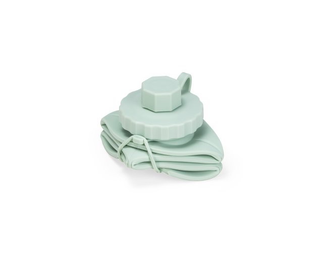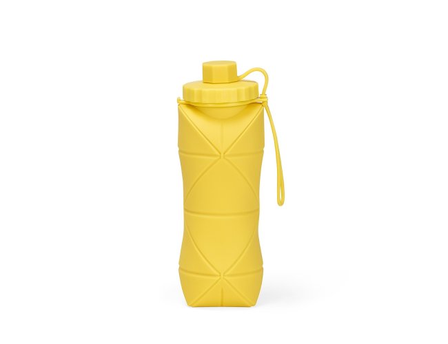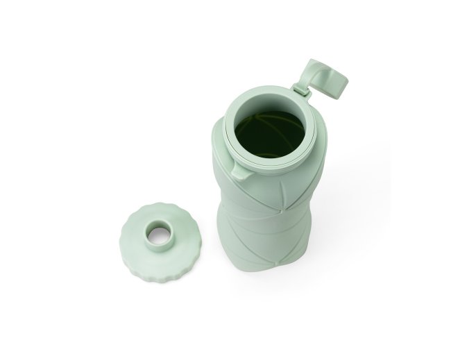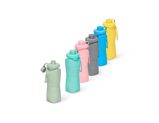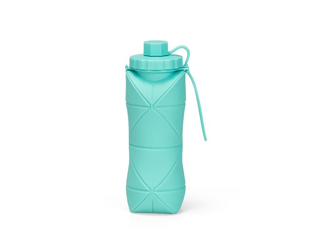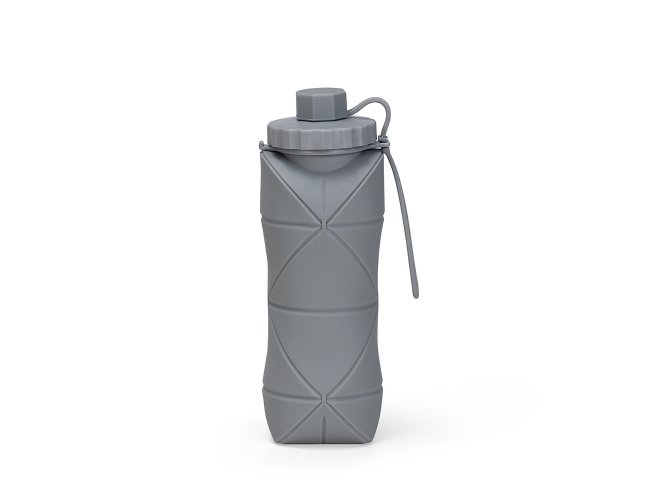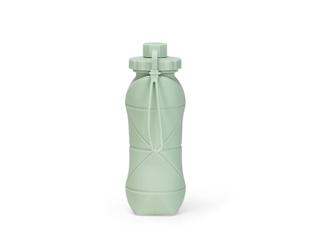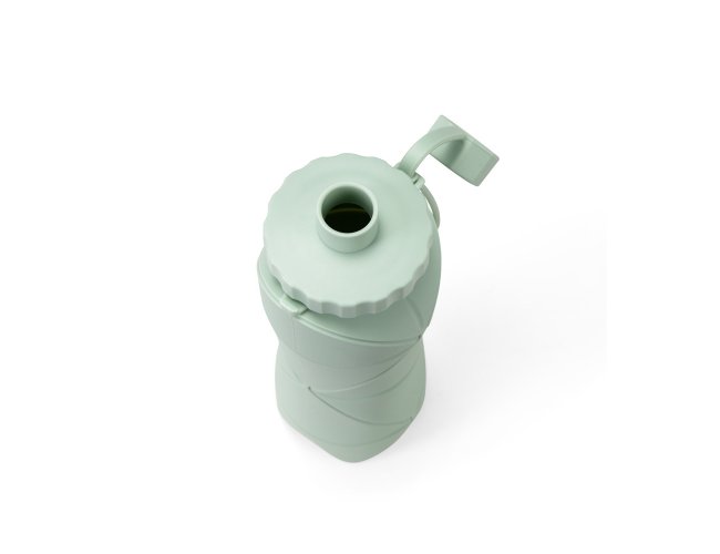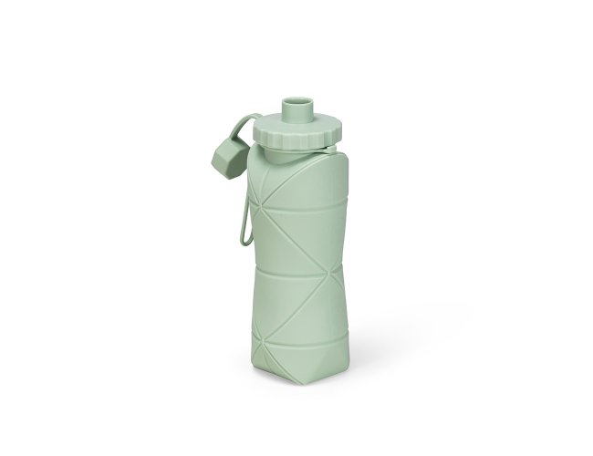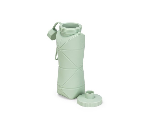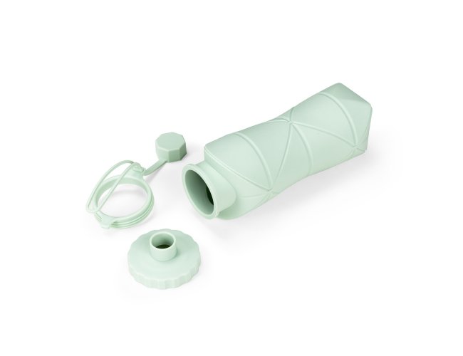 Garrafa dobrável com capacidade máxima de 600ml. Possui estrutura flexível em silicone, livre de BPA e é compatível com lava-louças. Conta com tampa rosqueável em polipropileno (PP) com protetor de encaixe para o bico e alça lateral para transporte, que também pode ser utilizada para envolver a garrafa quando dobrada.