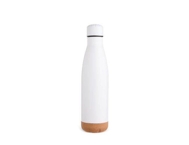 Garrafa térmica feita em inox com fundo em cortiça, tampa de plástico rosqueável e capacidade máxima de até 500ml. Apresenta estrutura de parede dupla e vedação a vácuo, o que permite a manutenção da temperatura de líquidos por mais tempo.