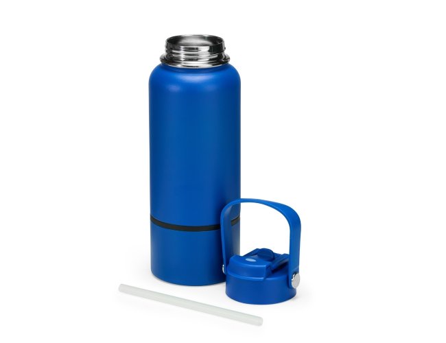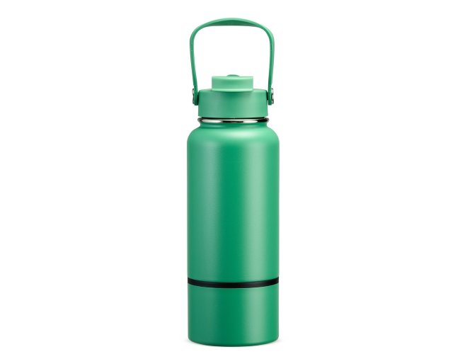 Garrafa térmica em inox com pintura eletrostática e capacidade de até 700ml. Apresenta estrutura interna de parede dupla e vedação a vácuo, o que ajuda a conservar a temperatura de líquidos por mais tempo. Conta ainda com fundo removível. Possui tampa plástica rosqueável com protetor para o bocal, bico flip, canudo interno removível e alça fixa para transporte.