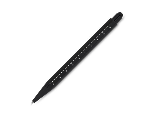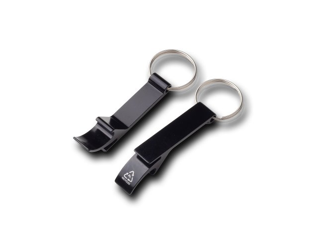 Kit composto por uma caneta e um chaveiro abridor, ambos fabricados em alumínio reciclado. O abridor possui formato de pé de galinha, próprio para abrir tampas de garrafas. A caneta tem corpo sextavado com régua impressa em uma das faces, acionamento por clique e ponteira touch emborrachada para uso em dispositivos touchscreen, além de carga esferográfica azul de 1,0 mm. Acompanha estojo de papelão com berço de espuma revestido em tecido aveludado.