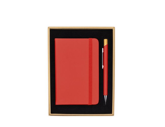 Medidas aproximadas para gravação (CxL): 17 cm x 13 cm (caixa) - 13 cm x 18 cm (caderneta) - 0,8 cm x 10 cm (caneta)