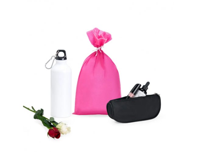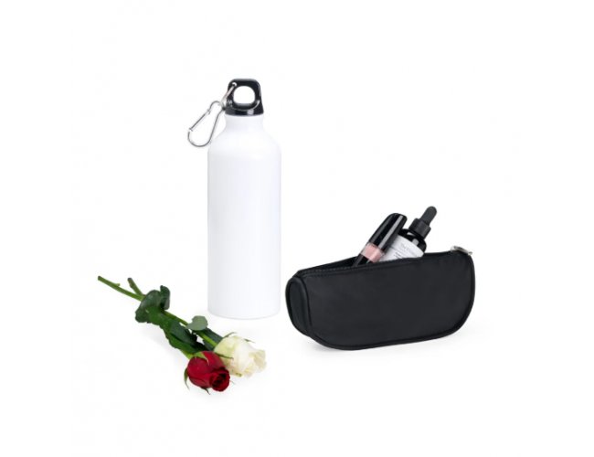Sugestão de PersonalizaçãoUma gravação a Laser na garrafa; Digital na necessaire e no saco de TNT.