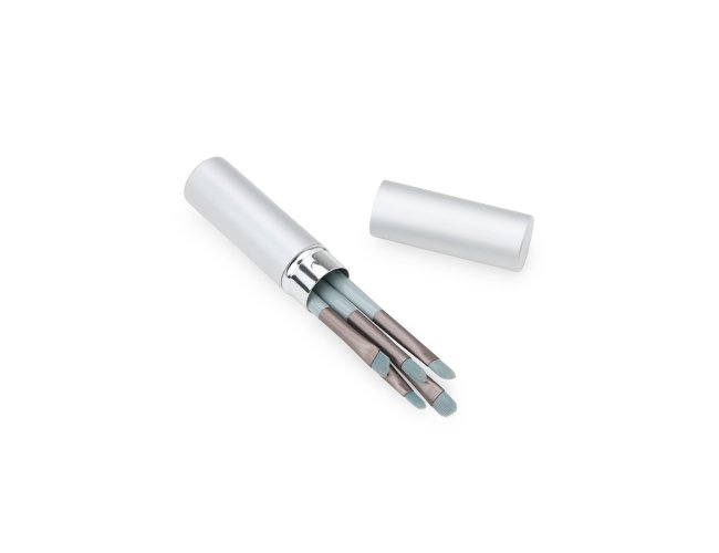 Tenha uma maquiagem incrível com este mini kit de pincéis, ideal para precisão e acabamento perfeito. Com cerdas macias, cabos plásticos ergonômicos e estojo de alumínio, oferece elegância, conforto e resultados impecáveis para iniciantes e profissionais. Inclui um pincel língua de gato, perfeito para bases líquidas ou cremosas; um pincel chanfrado, ideal para delinear olhos e sobrancelhas; um pincel côncavo, indispensável para esfumar sombras; um pincel para aplicar sombras de forma uniforme; e um pincel de precisão reto pequeno, adequado para aplicar sombras ou fazer detalhes mais marcantes, como iluminar a linha abaixo das sobrancelhas.