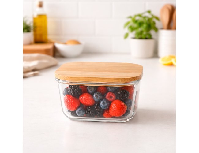 Marmita em vidro borossilicato com capacidade para até 250ml. Possui tampa hermética em bambu. Aviso: Retire a tampa da marmita antes de levá-la ao micro-ondas. Marmita versátil para freezer e micro-ondas.