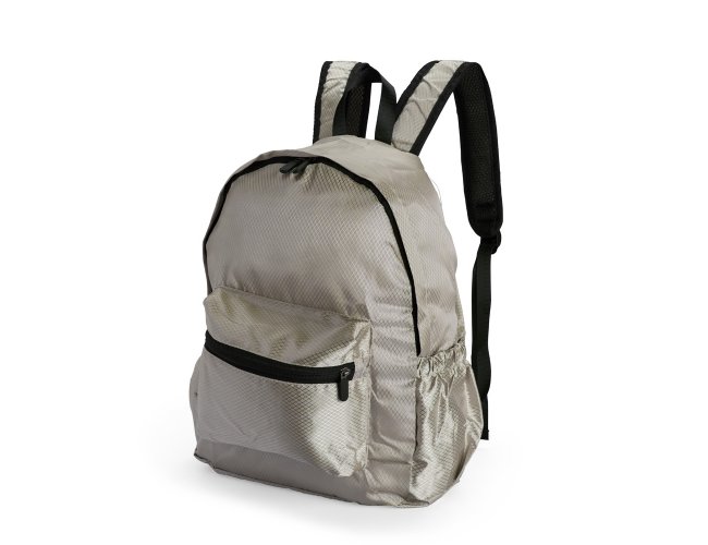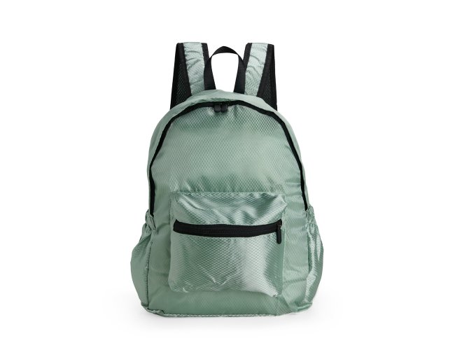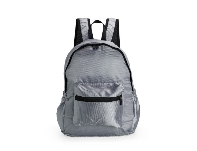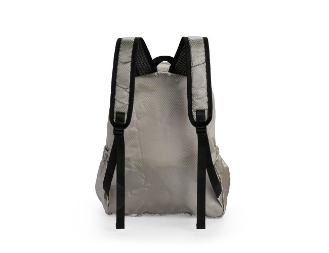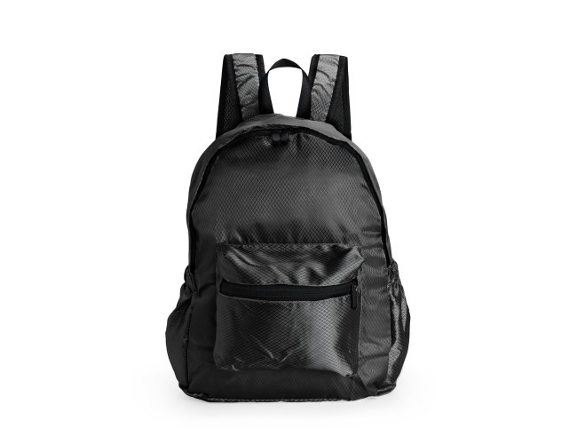 Mochila dobrável confeccionada em poliéster impermeável, fechamento em zíper e capacidade máxima de 18 litros. Pode ser transportada como um estojo compacto quando dobrada e, ao ser desdobrada, apresenta um compartimento interno com divisória para notebook de até 14 polegadas. Conta ainda com bolso frontal com zíper e dois bolsos laterais com elástico, uma alça superior em nylon e duas alças para as cosas com revestimento em espuma respirável.