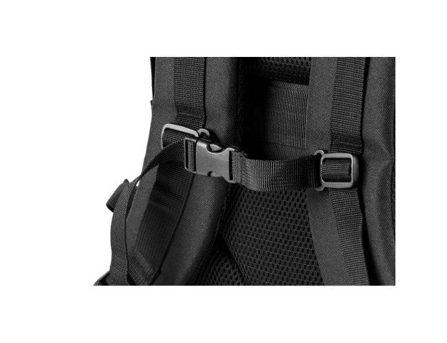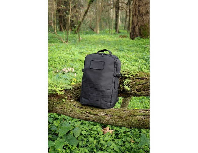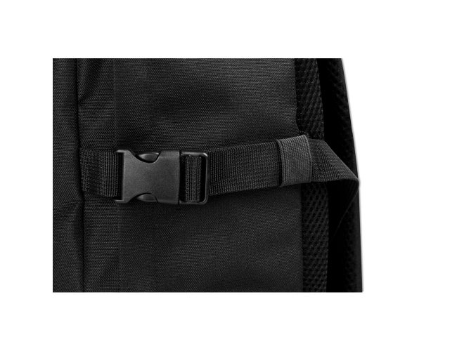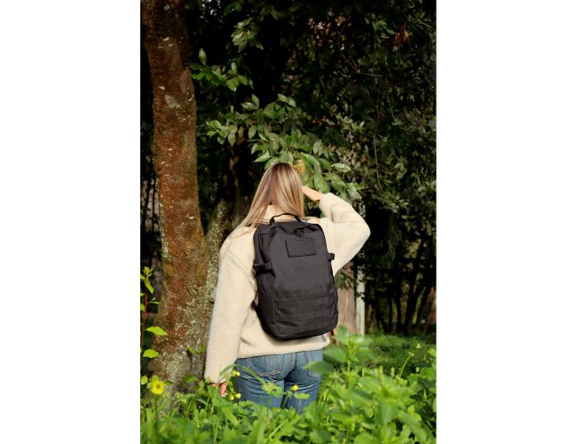 Mochila para utilização diária em ambientes profissionais ou de lazer, ideal também para esportes e caminhadas ao ar livre. O seu design torna esta mochila um produto versátil e resistente. Composta por poliéster reciclado 600D de alta densidade e forro em poliéster reciclado 210D. Possui um compartimento principal com bolso para notebook até 17.3" e diversos bolsos que facilitam a organização dos itens, um bolso com zíper e um bolso lateral. Possui características particulares como cintas de compressão nas laterais, tiras multifuncionais em webbing, alça peitoral ajustável, pega na parte superior e alça para trolley em caso de necessidade. Contém também um emblema removível, com o mesmo material da mochila, ideal para personalização. Capacidade até 21 L. 310 x 470 x 150 mm