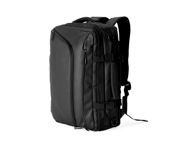 Mochila em nylon com uma camada de PU impermeável com capacidade máxima de 28 litros. Conta com abertura expansível e fivelas laterais ajustáveis para melhor aproveitamento do espaço interno. Possui compartimento principal em poliuretano termoplástico e duas divisórias de tamanhos distintos, além de bolsos frontais, um lateral em tela e outro traseiro com divisória para notebook de até 15,6 polegadas. Traz alças acolchoadas em espuma respirável, alça lateral para transporte vertical e alça de ombro ajustável em nylon.