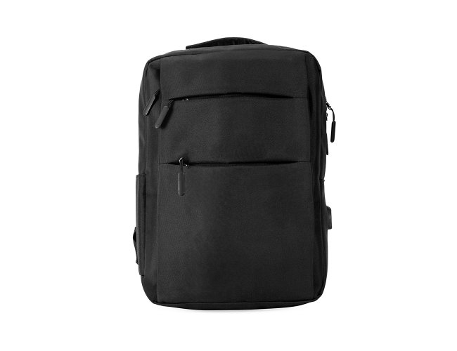 Mochila confeccionada em nylon Oxford impermeável, com fechamento em zíper, puxadores com detalhes em nylon e plástico e capacidade de até 14 litros. Possui compartimento interno principal com bolsos de tamanhos variados e divisória para notebooks de ate 15,6 polegadas. Possui três compartimentos externos, um deles com abertura lateral. Dispõe também de bolso lateral, porta USB, alça de mão em poliéster 210D e alças para as costas em tecido respirável.
