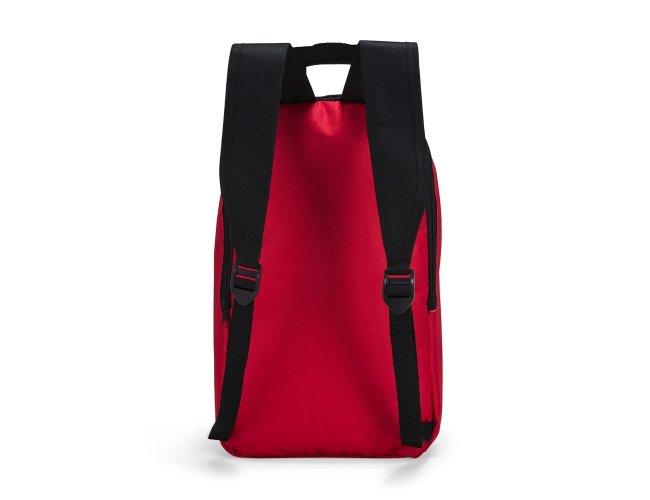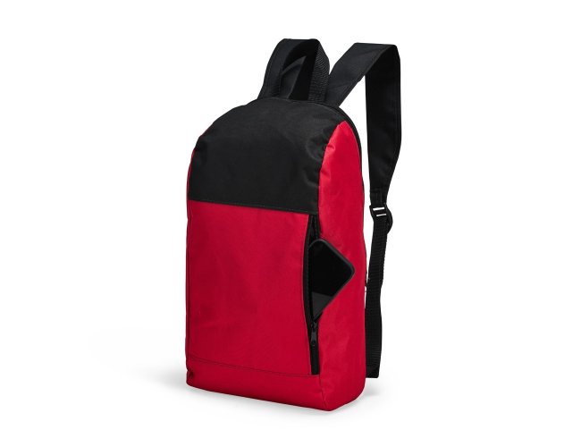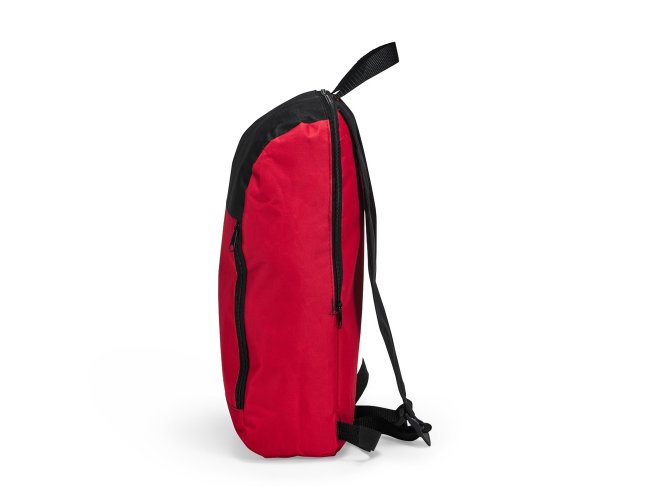 Mochila confeccionada em poliéster impermeável com fechamento em zíper e capacidade máxima de 14 litros. Conta com bolso frontal com abertura lateral, uma alça superior de mão em nylon e duas alças para as costas do mesmo tecido da mochila.