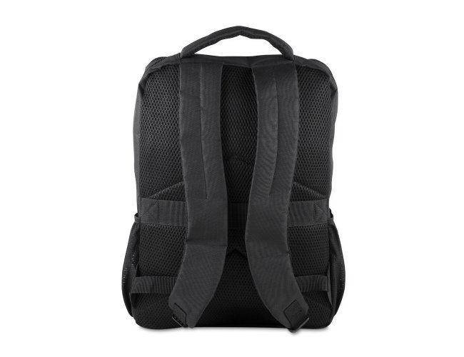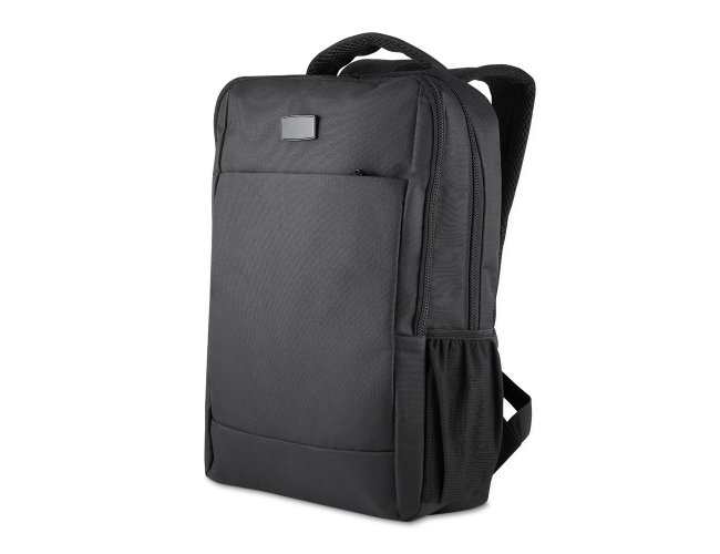 Mochila confeccionada em poliéster 210D impermeável com fechamento em zíper e capacidade máxima de 16 litros. Possui compartimento interno com divisória para notebooks de até 15,6 polegadas. Conta ainda com dois compartimentos frontais em tamanhos diferentes e dois bolsos laterais em malha com elástico. Dispõe ainda de engate para malas e revestimento em tecido acolchoado respirável na região posterior, nas alças de ombro e na alça superior de mão. Acompanha plaquinha metálica imantada (removível apenas com imã).