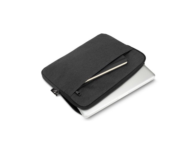Bolsa para notebook em poliéster reciclado 600D de alta densidade e forro em poliéster reciclado 210D. Possui um compartimento principal para notebook até 14" e um bolso frontal para guardar pequenos objetos. A pasta é totalmente almofadada garantindo maior resistência e durabilidade. 360 x 260 x 25 mm