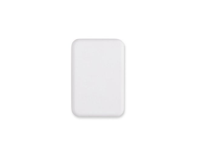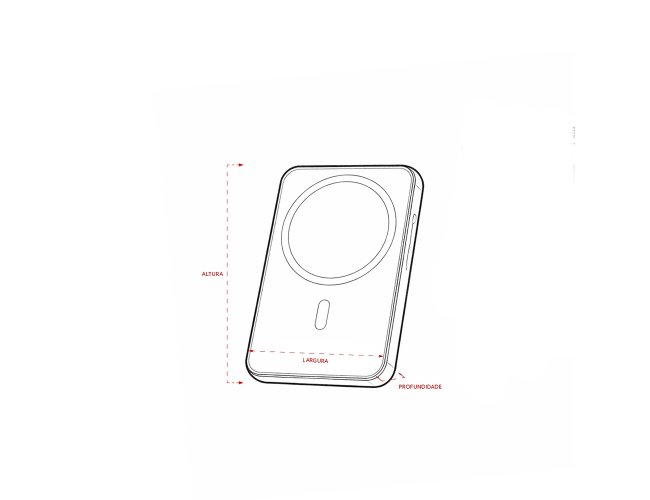 Power bank para carregamento de dispositivos compatíveis com a tecnologia de indução, estrutura em plástico, entrada USB-C para alimentação e capacidade de até 10.000mAh.