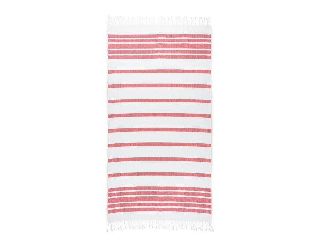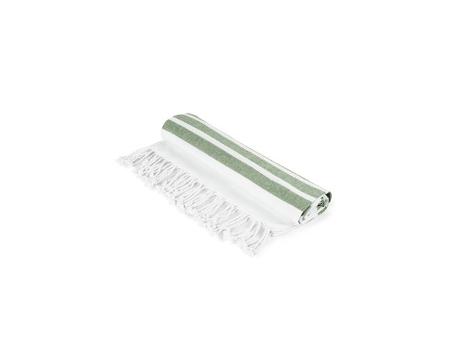 Toalha de praia em algodão 70% reciclado e poliéster 30% reciclado (180 g/m²), com um design minimalista e elegante para os seus dias de praia. 900 x 1700 mm